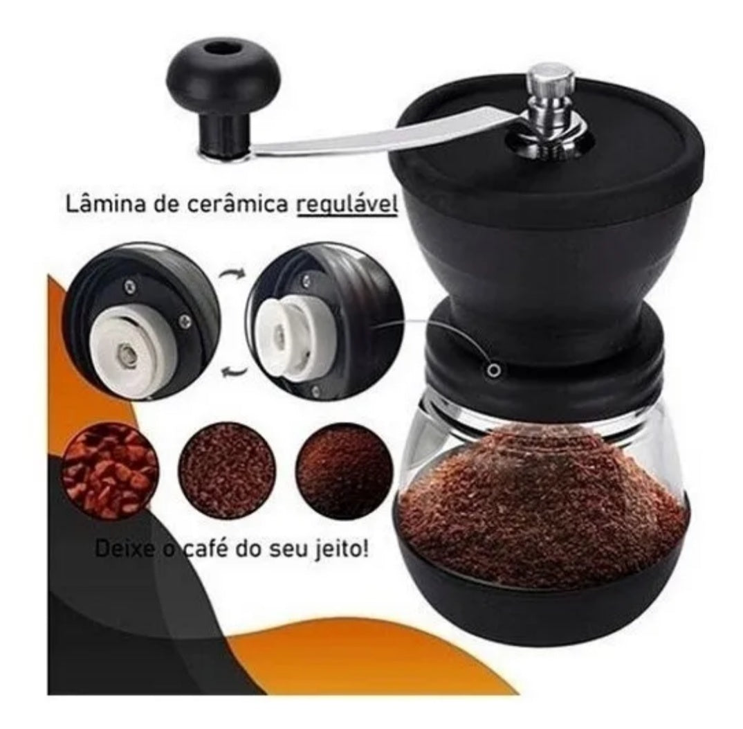 Moedor de Café Manual Inox Cerâmica Vidro Reservatório Com Regulagem